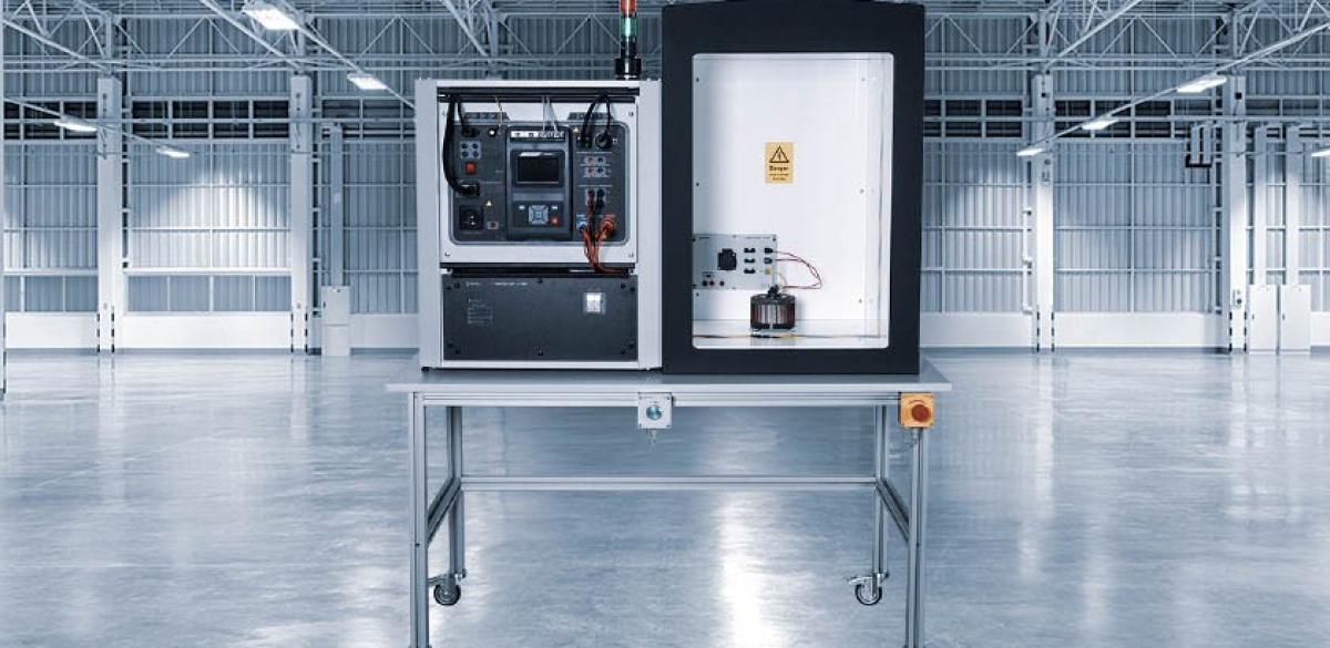 Test station using enclosures such as test cages without doors is the preferred solution for production with very high frequency of testing. The safety of such system is assured with a light barrier sensor (light curtain). The light sensor monitors breaching of the prohibition zone by any object. If the light curtains detect a breach, the safety module will disconnect the measurement circuits from the mains. The testing sequence can only start when the light sensors are activated and the prohibition zone is not breached, making malfunction or misuse practically impossible.